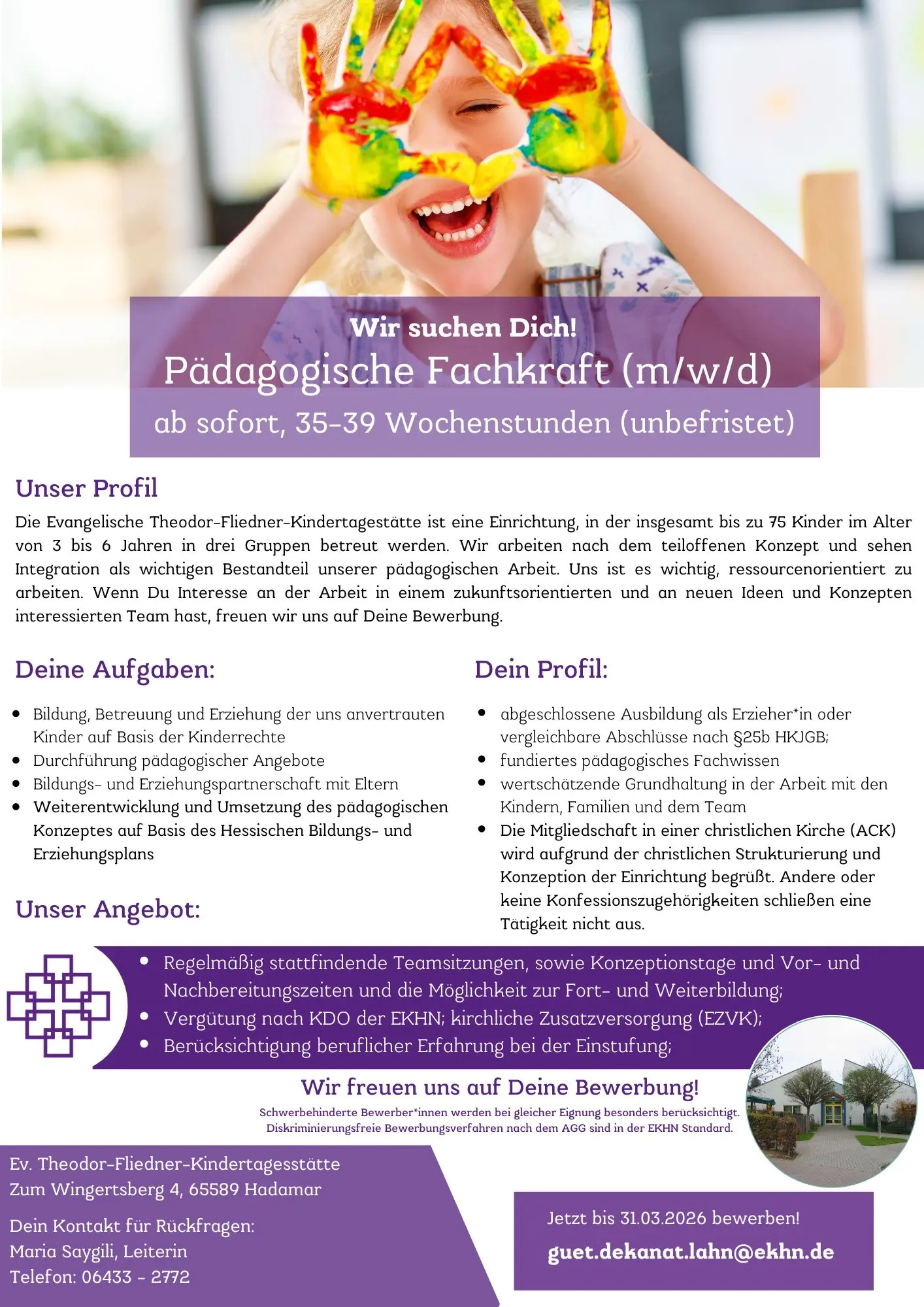 Wir suchen Dich in Hadamar - Pädagogische Fachkraft (m/w/d) ab sofort, 35-39 Wochenstunden (unbefristet)